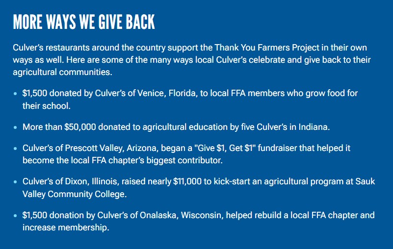 To learn more about how to get involved or donate to the Thank You Farmers Project, visit https://www.culvers.com/about-culvers/thank-you-farmers-project.